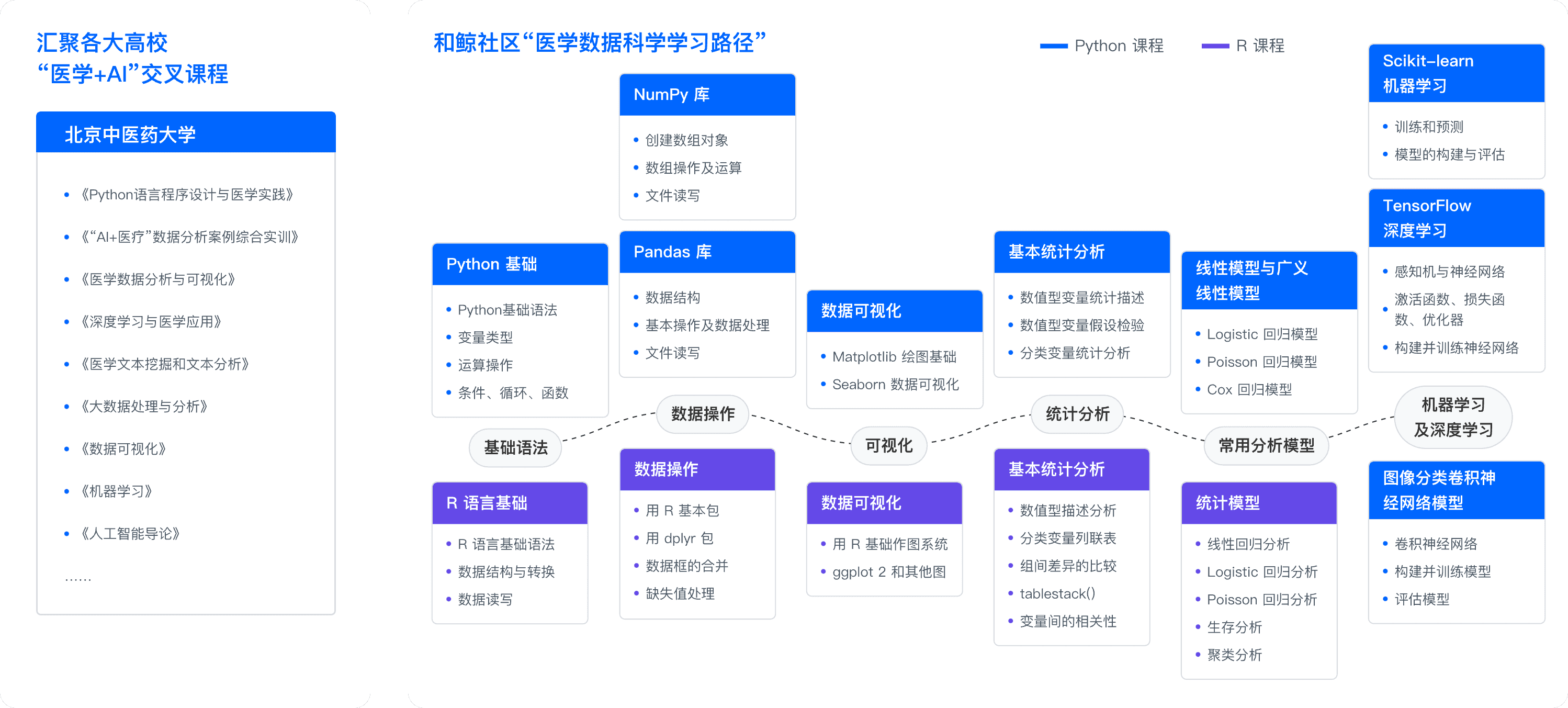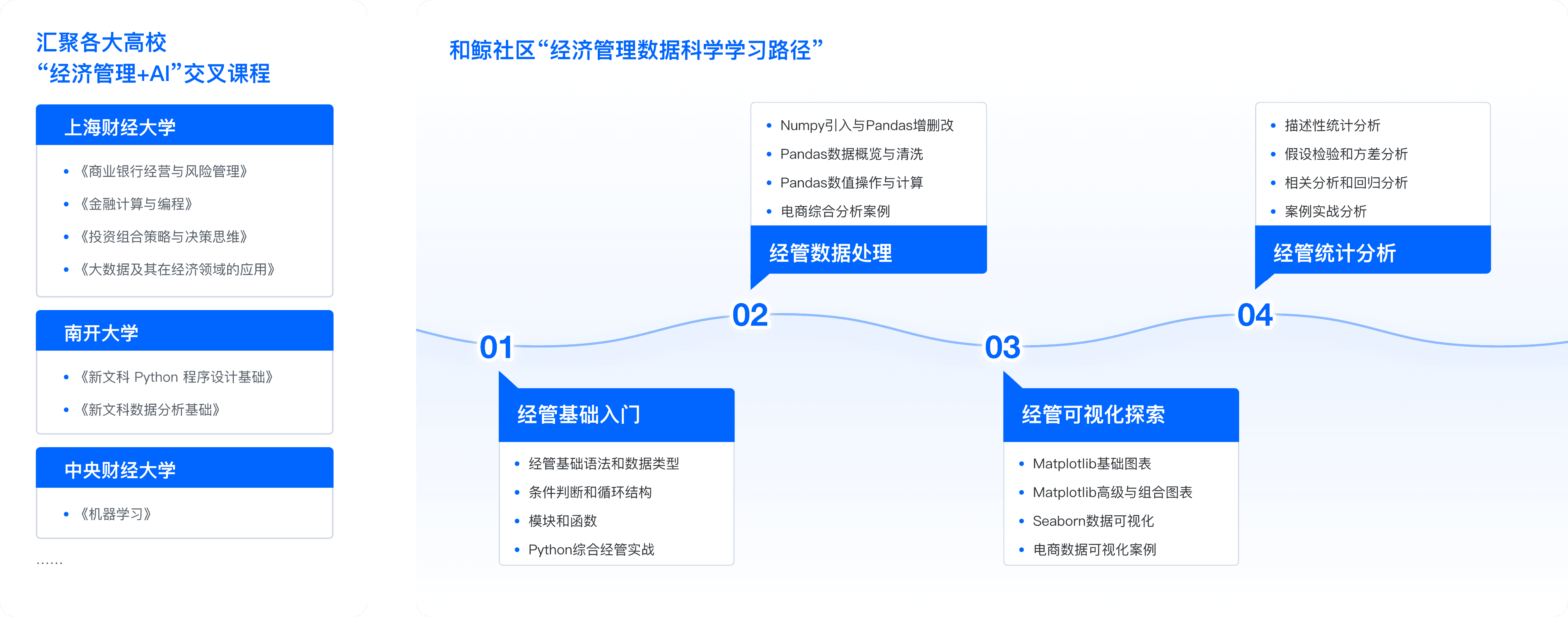和鲸积累了丰富的学科实践资源与建设经验,包含医学、经济管理、地球科学、人文社科、航运物流等各大学科