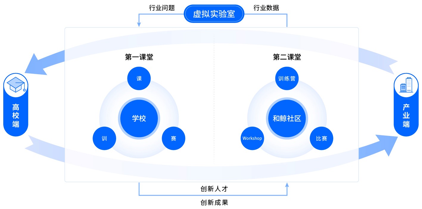 和鲸科技于2024年5月全新发起“101 数智领航计划”,通过产教融合、科教融汇双循环,整合和鲸社区近十年积累的多学科实践资源、ModelWhale 教研训一体化平台和智谱 AI 大模型,打造 AI 创新虚拟实验室,帮助高校解决“学科+人工智能”的落地难题,培养创新型高质量人才,推动创新成果产出。