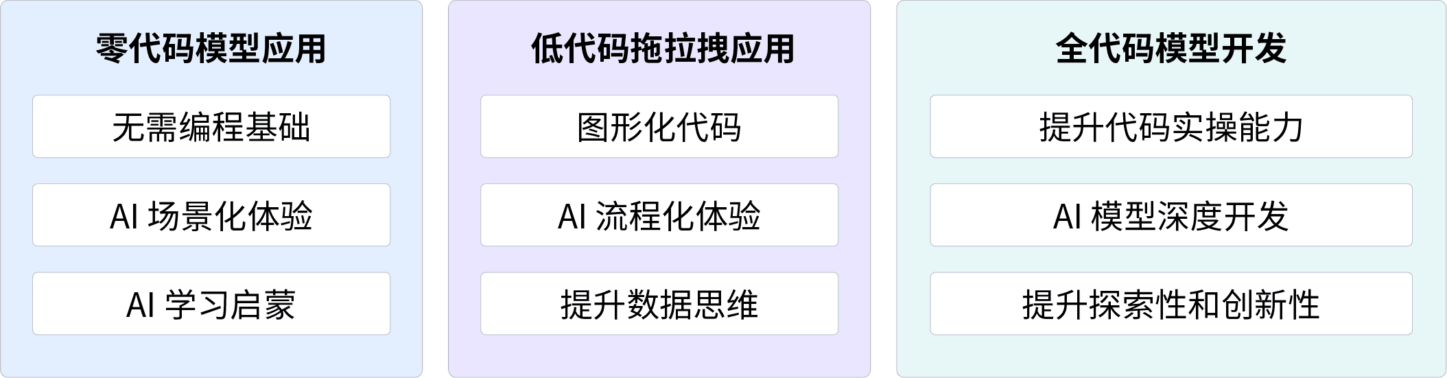 提供从零代码到全代码的多样化学习工具